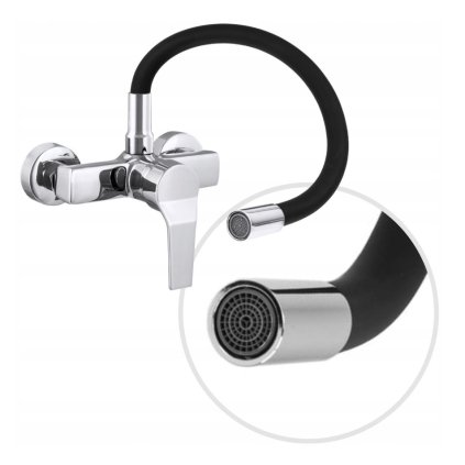 Erga Fizar, falra szerelhető mosogató csaptelep hosszú kifolyóval, matt fekete, ERG-YKA-BZ.FIZAR-BLK