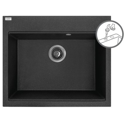 Deante Momi, 1 kamrás gránit mosogató 500x450x230 mm gazdaságos szifonnal, fekete matt, DEA-ZKM_N10A