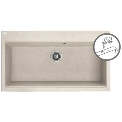 Mosogató Quality Ferrum 50, konyhai gránit mosogató 490x450x195 mm + szifon, fehér, SKQ-FER.W.1K50.X