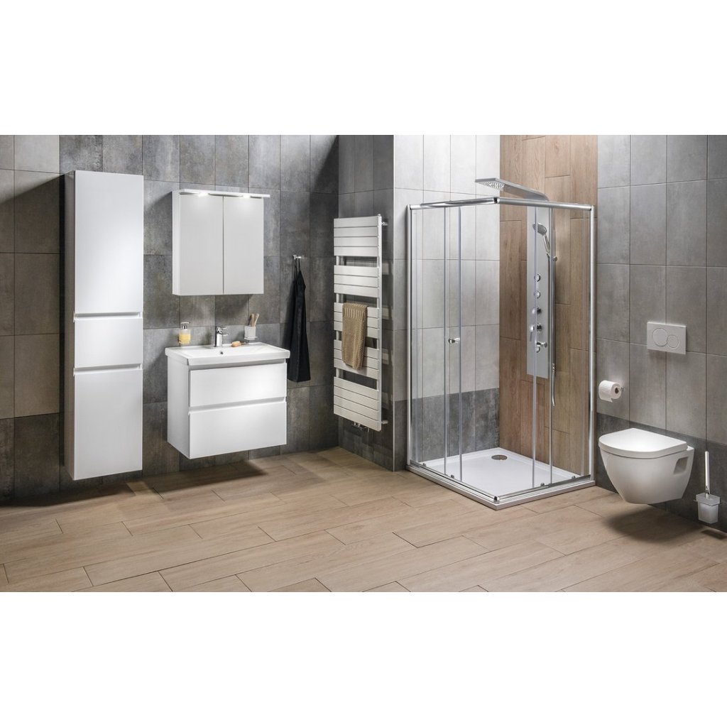 Az ALTAIR kollekció modern fürdőszobabútorokat mutat be fogantyú nélküli nyitással, valamint ferde felső fiók- és ajtóélekkel a kényelmes nyitás érdekében. Fehér fényes felülettel vagy tökéletes tölgy utánzattal - Emporio laminált tölgy. A kínálatban megtalálhatóak a legnépszerűbb méretű mosdókagyló szekrények, melyeket kétféle magas kiegészítő szekrény egészít ki - választható polcokkal vagy szennyeskosárral.