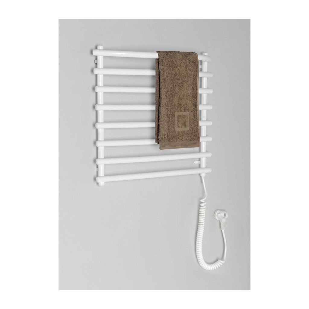 A törölközők melegítésére és szárítására tervezett elektromos melegítő, amelyet télen különösen értékelni fog. A szárítók fehérre festett acélból (RAL9016) és szürke alumínium - metálból (RAL9007) készülnek. Belül egy fűtőkábel található, folyékony töltőkeverék használata nélkül.