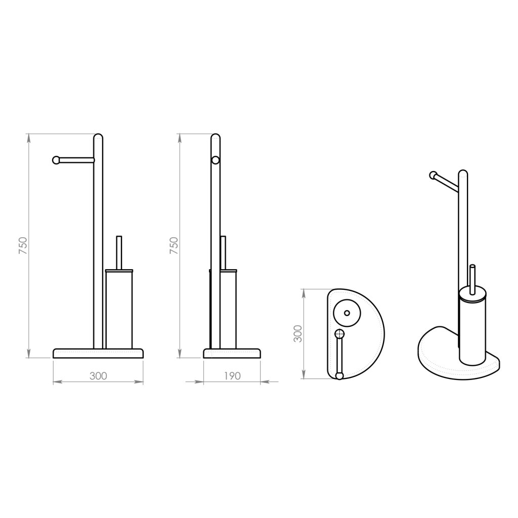 Állvány WC-papír tartóval és WC-kefével