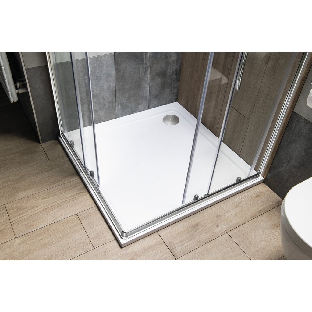 Öntött márványból készült négyszögletes zuhanytálca, csúszásgátló nélkül