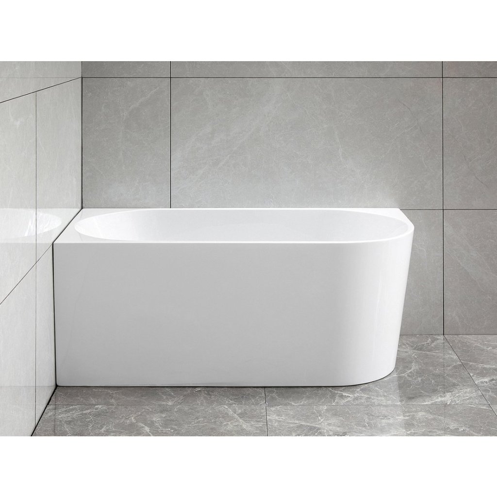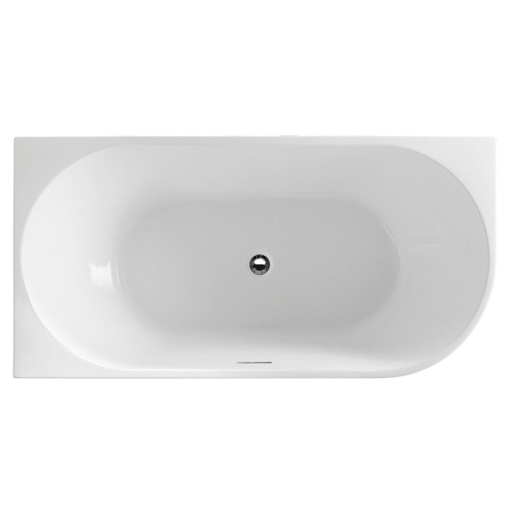 A szabadon álló TIBERA fürdőkád nincs falazva vagy csempézett. Kialakítása sarokba szerelhető, így érdekes alternatívája a klasszikus sarokkádnak. A hátsó oldala is látható, így még a térben is elegánsan fog kinézni. Érdemes odafigyelni a túlfolyó téglalap alakú, rozsdamentes burkolatú rés alakú megoldására.