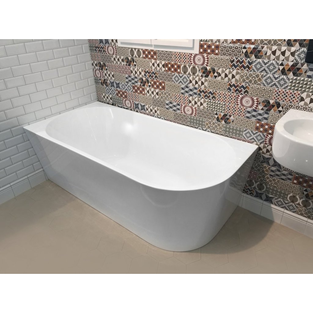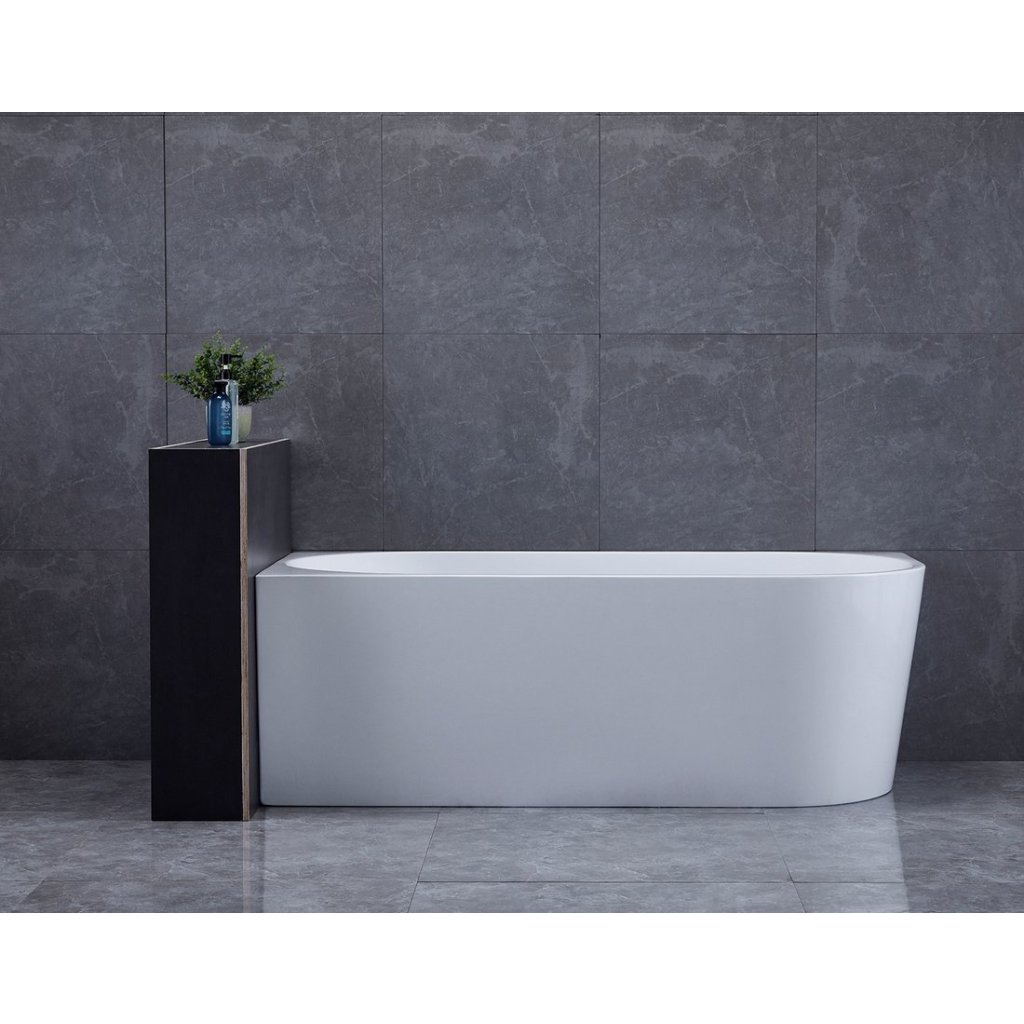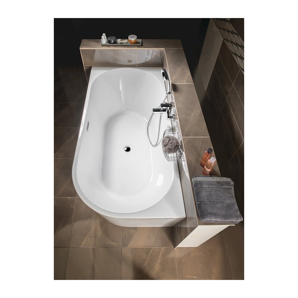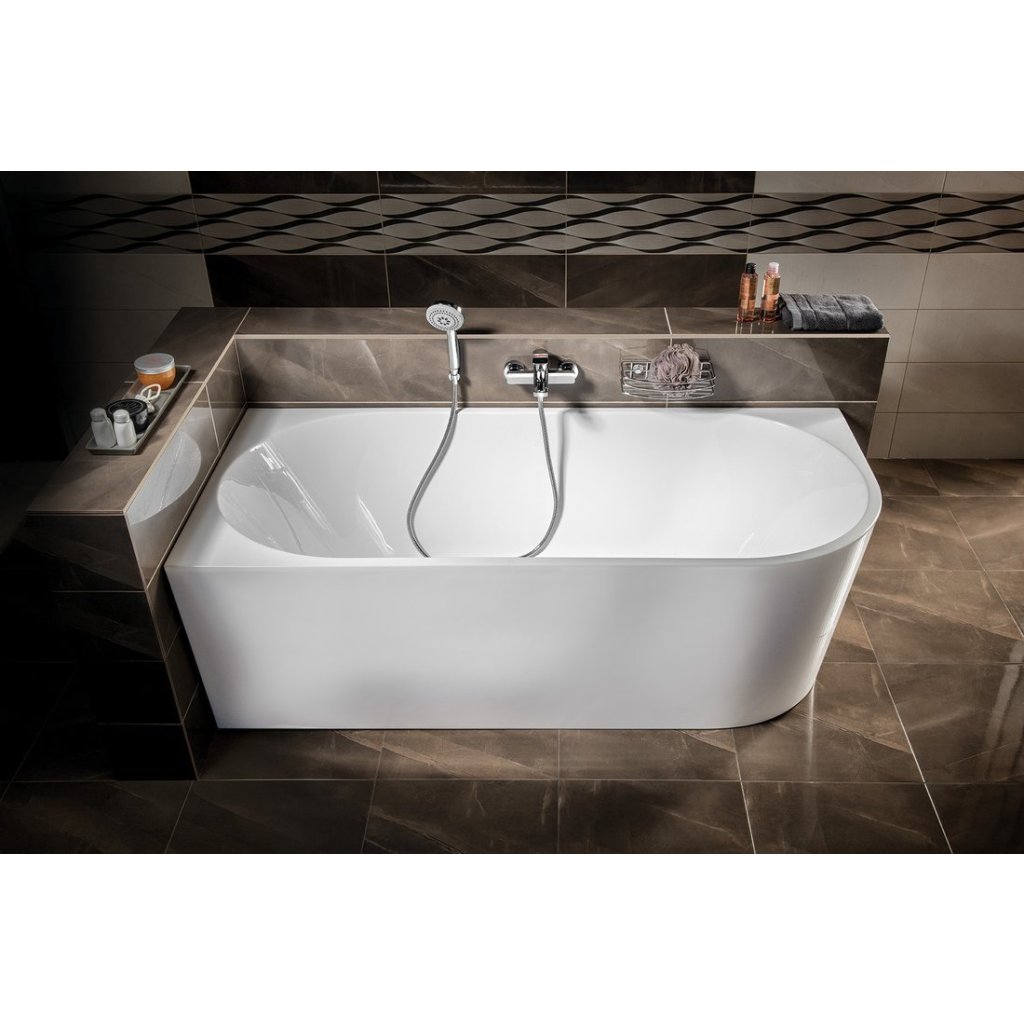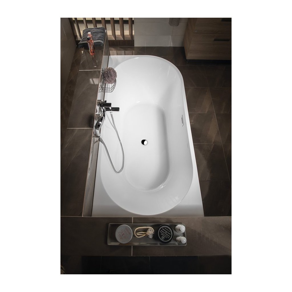 A szabadon álló TIBERA fürdőkád nincs falazva vagy csempézett. Kialakítása sarokba szerelhető, így érdekes alternatívája a klasszikus sarokkádnak. A hátsó oldala is látható, így még a térben is elegánsan fog kinézni. Érdemes odafigyelni a túlfolyó téglalap alakú, rozsdamentes burkolatú rés alakú megoldására.