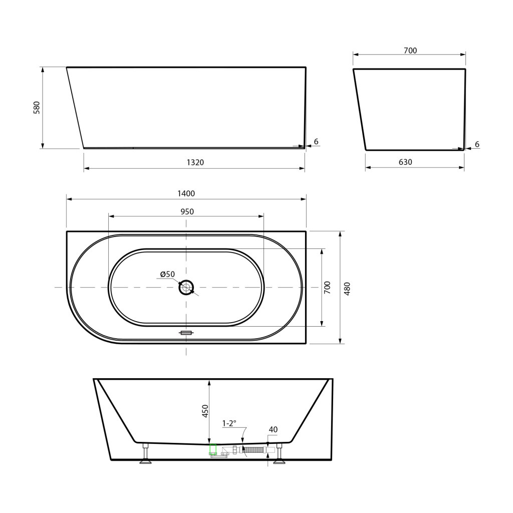 | A csomag tartalmaz | Túlfolyó készlet, Szifon, Állítható lábak, Lefolyó | |