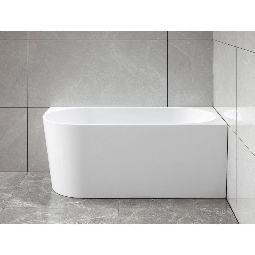 A szabadon álló TIBERA fürdőkád nincs falazva vagy csempézve. Kialakítása sarokba szerelhető, így érdekes alternatívája a klasszikus sarokkádnak. A hátsó oldala is látható, így még a térben is elegánsan fog kinézni. Érdemes odafigyelni a túlfolyó téglalap alakú, rozsdamentes burkolatú rés alakú megoldására.