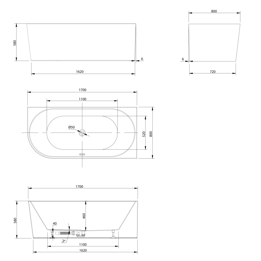 | A csomag tartalmaz | Túlfolyó készlet, Szifon, Állítható lábak, Lefolyó | |