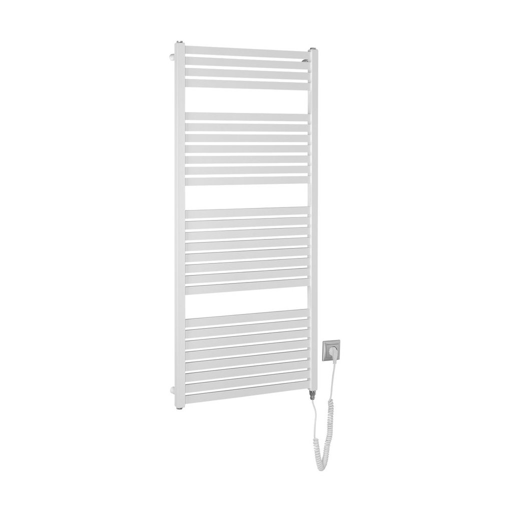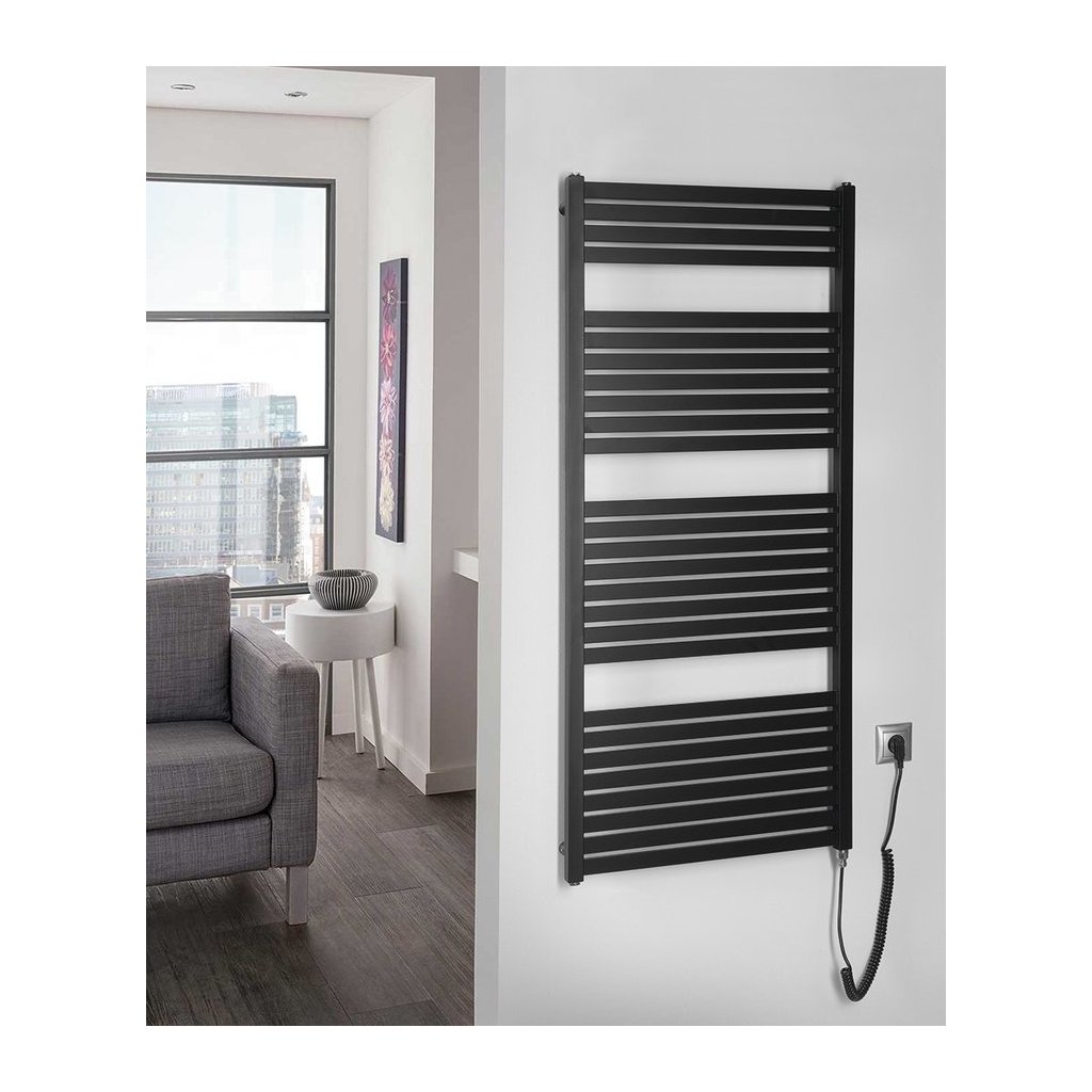 Elektromos fűtőtestek négyzet alakú csövekkel. Az elektromos fűtőtestek fürdőszobákban, folyosókban vagy WC-kben való elhelyezésre alkalmasak. Elektromos fűtőrúddal vannak felszerelve kábellel és dugóval a konnektorba.