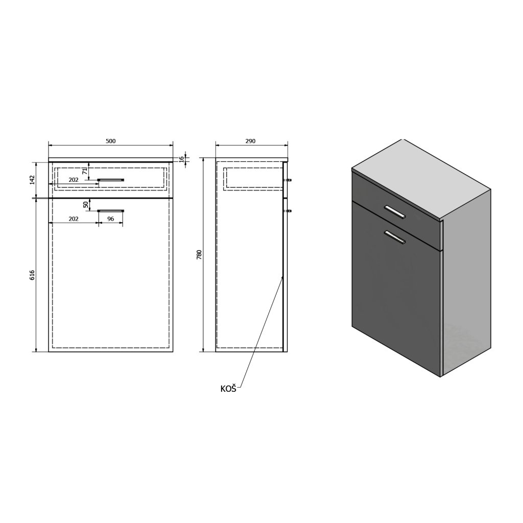 A szekrény alapfelszereltségéhez 2 féle fogantyú tartozik - szögletes (Zoja) és kerek (Keramia Fresh), így könnyen kombinálható az Ön által választott Zoja és Keramia Fresh szekrényekkel.