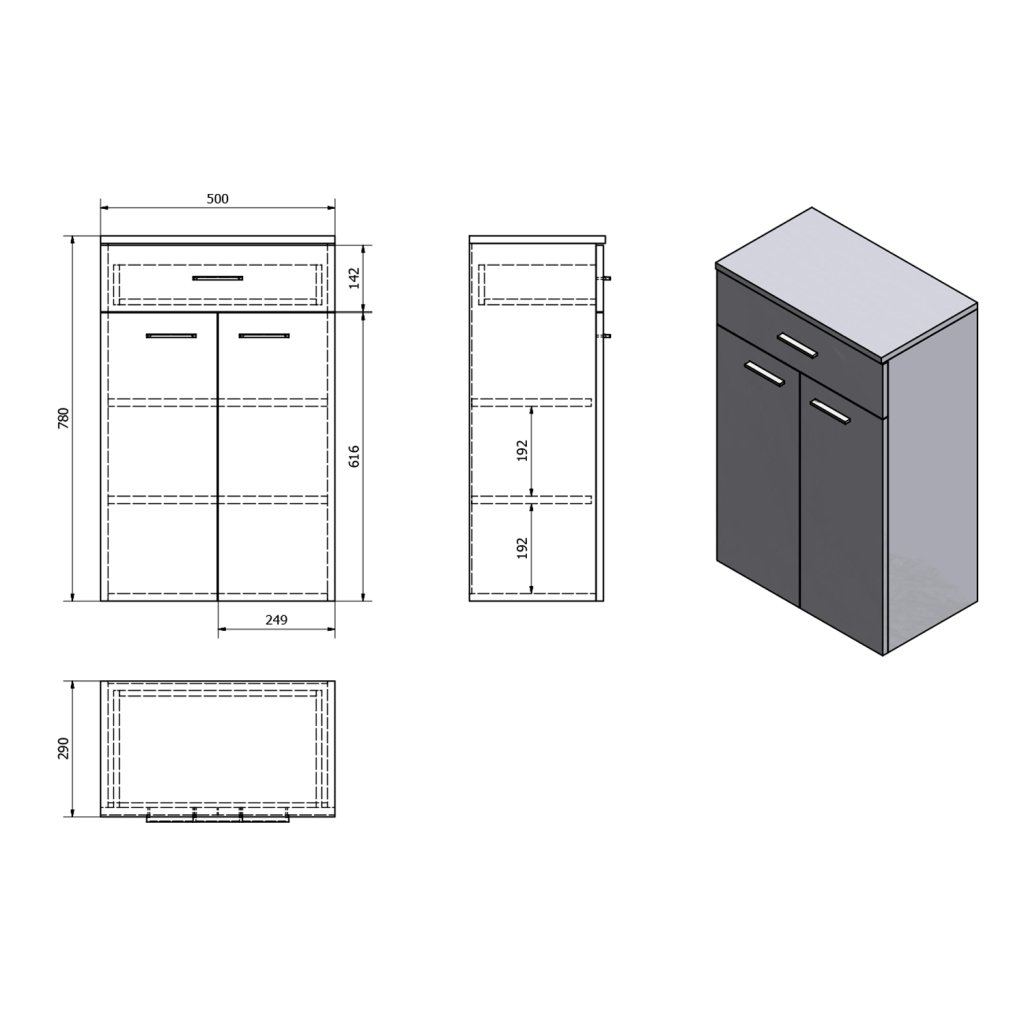 A szekrényhez alapkivitelben 2 féle fogantyú tartozik - szögletes (Zoja) és kerek (Keramia Fresh), így más Zoja és Keramia Fresh szekrényekkel is kombinálható.