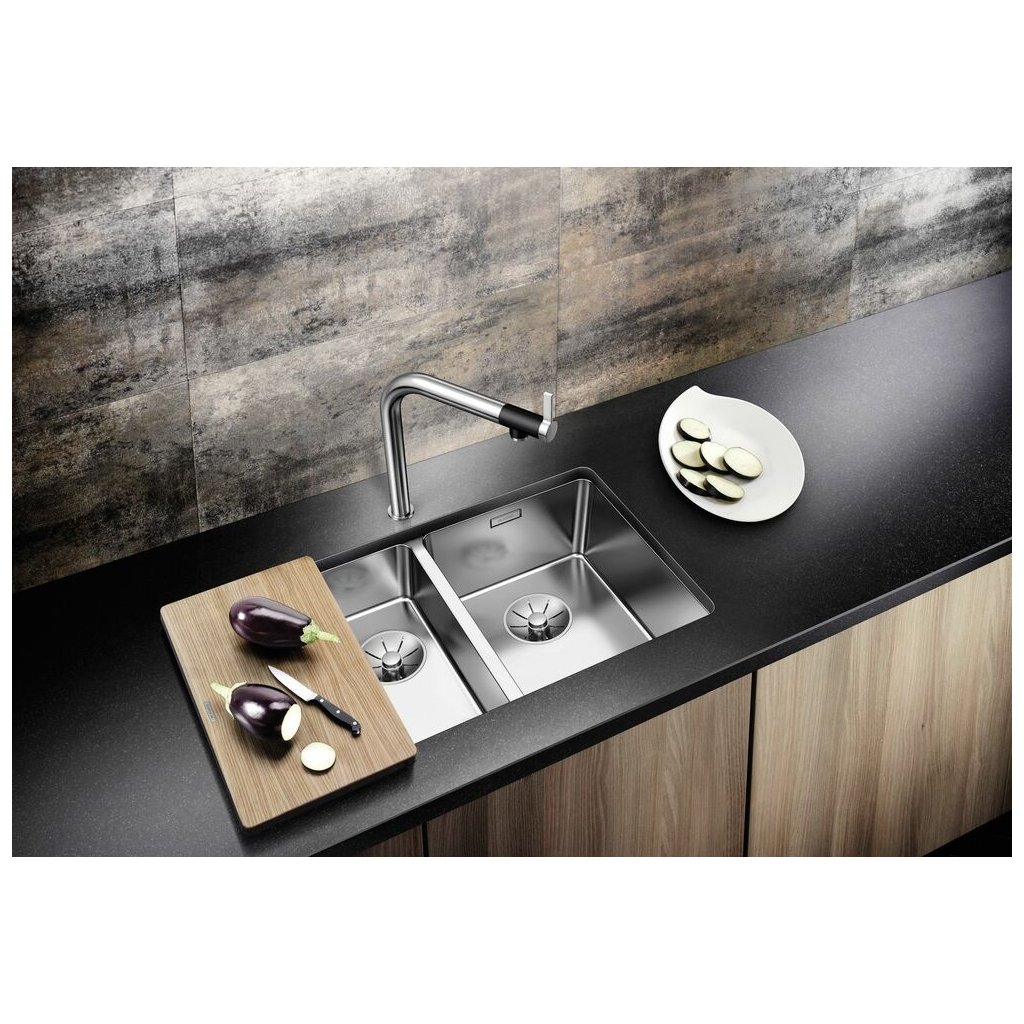 Legyen egy lépéssel előrébb! A konyhában gondoljon a kényelemre és az elegendő helyre, amikor ételt készít vagy mosogatott . Válaszd ezt a dupla mosogatót selymesen fényes rozsdamentes acél kivitelben. A Blanco Andano mosogató kiváló minőségű rozsdamentes acélból készült. Még így is jobb kerülni a drótkeféket és a súroló hatású tisztítószereket a tisztítás során. Megkarcolhatja és véglegesen megsérülhet. A mosogató teljes mérete 585x440 mm. Két különböző méretű mosdóból áll. A nagyobb mosdó a bal oldalon található. Mérete 340 x 400 mm, mélysége 190 mm. A jobb oldalon egy kisebb mosdó található. Mérete 180 x 400 mm, mélysége 130 mm. A mosdókagylót a munkalap alá történő alsó felszerelésre tervezték. Legalább 600 mm széles alsó szekrényre van szüksége.