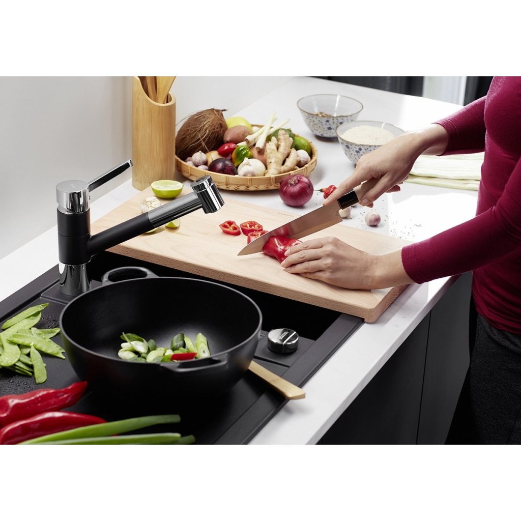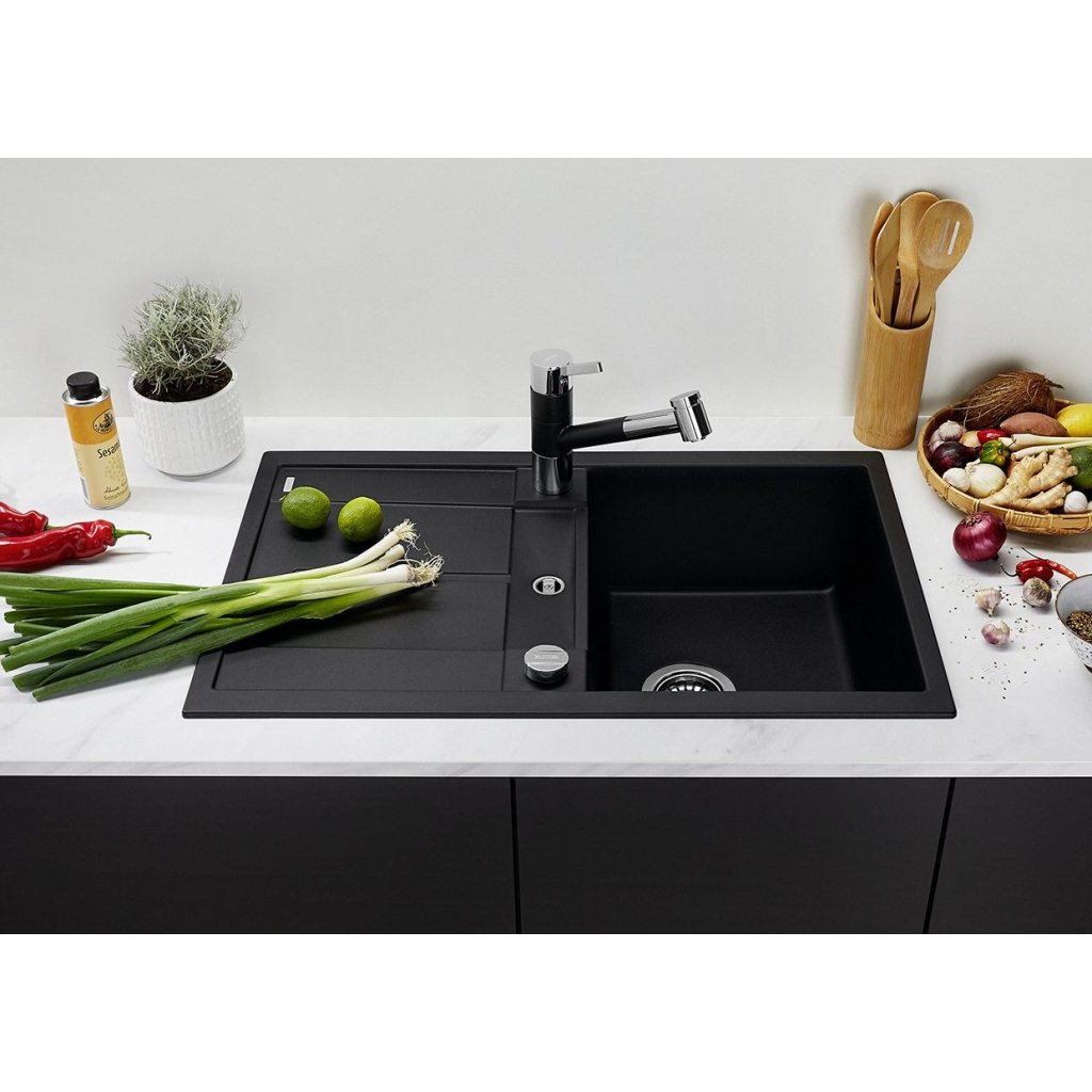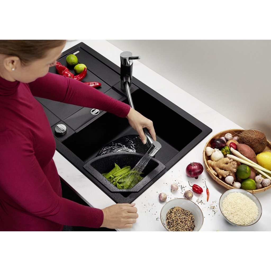 A Blanco METRA 45 S egy 780 x 500 mm méretű mosogató. A 345 x 430 mm méretű mosogatótálca 190 mm mély és praktikus vízelvezető felülettel rendelkezik a mosogató hatékonyabb használatához. A mosogató a munkalapra, de a munkalap alá is szerelhető, legalább 450 mm-es szekrényszélességgel. Széles színválasztékból választhat. A gránit mosogató nagyon könnyen karbantartható. Ezenkívül ellenáll a karcolásoknak és a normál használatból eredő egyéb lehetséges sérüléseknek. Színstabil és ellenáll a magas hőmérsékletnek is. A mosogató egyik előnye alacsony porozitása és antibakteriális elemei, amelyeknek köszönhetően a mosogató higiénikus opcióvá válik háztartásában.
