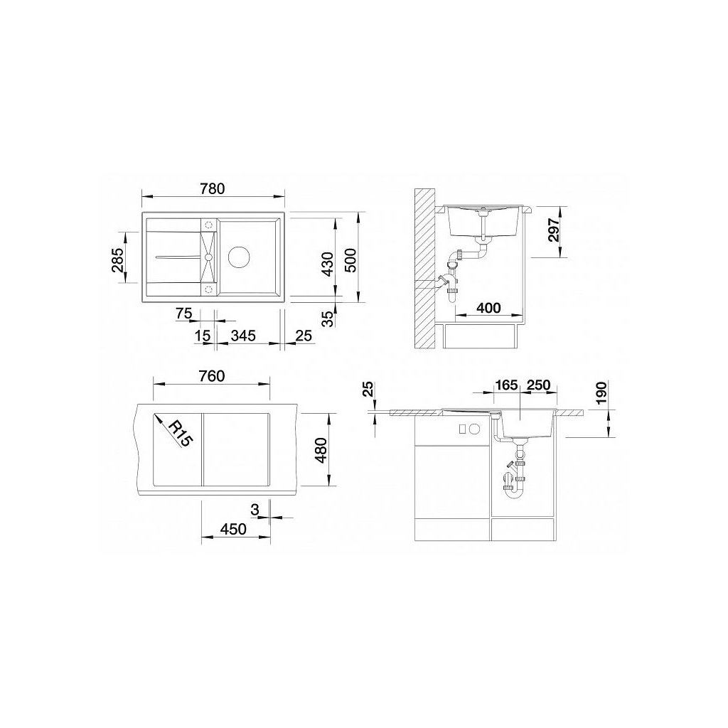 Blanco Metra 45 S, szilgránit mosogató 780x500x190 mm, 1 kamrás, szürke vulkán, BLA-527289