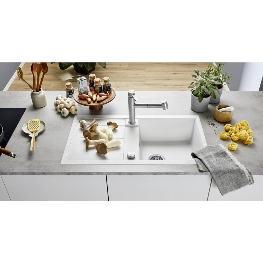 A Blanco METRA 45 S egy 780 x 500 mm méretű mosogató. A 345 x 430 mm méretű mosogatótálca 190 mm mély és praktikus vízelvezető felülettel rendelkezik a mosogató hatékonyabb használatához. A mosogató a munkalapra, de a munkalap alá is szerelhető, legalább 450 mm-es szekrényszélességgel. Széles színválasztékból választhat. A gránit mosogató nagyon könnyen karbantartható. Ezenkívül ellenáll a karcolásoknak és a normál használatból eredő egyéb lehetséges sérüléseknek. Színstabil és ellenáll a magas hőmérsékletnek is. A mosogató egyik előnye alacsony porozitása és antibakteriális elemei, amelyeknek köszönhetően a mosogató higiénikus opcióvá válik háztartásában.