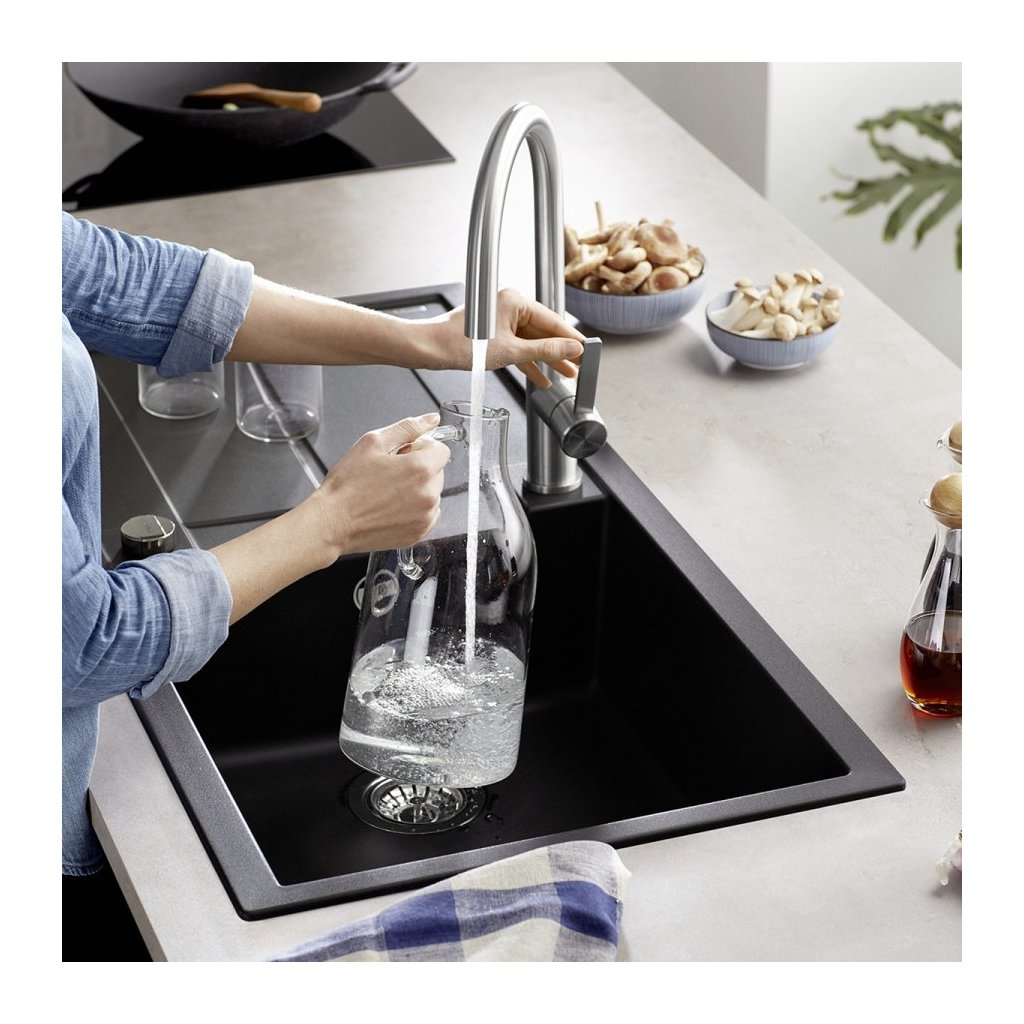 Kompozit anyag, amely legfeljebb 80%-ban gránitból áll. Az ebből az anyagból készült mosogatók lenyűgöznek kő karakterükkel, kellemes tapintásukkal és felülmúlhatatlan tulajdonságaikkal. Kemények, szilárdak és finoman porózusak. Az anyag tökéletes egyensúlyt képvisel a könnyű kezelhetőség és a tartósság, a sima felület és a konyhai környezetbe ideálisan kombinálható színek között.