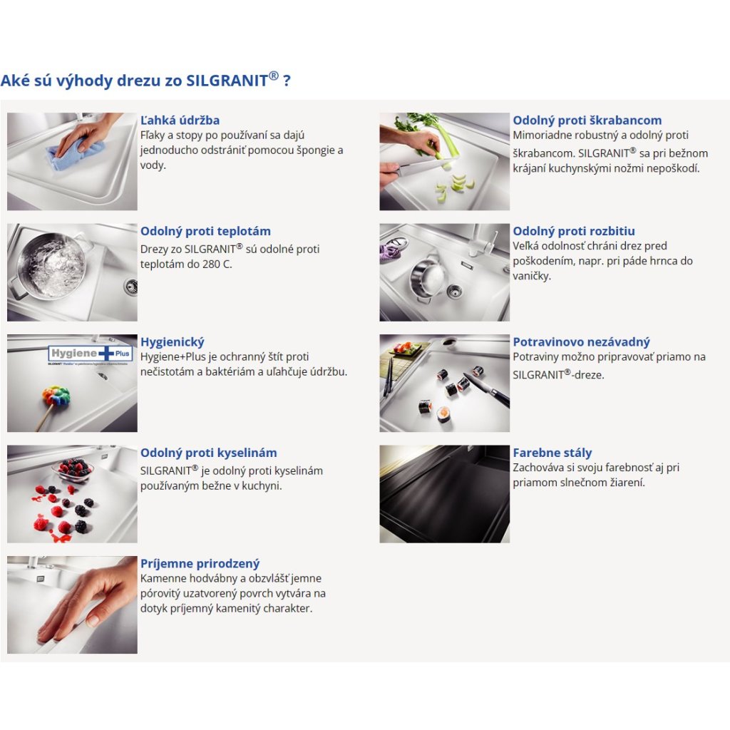 Időtlen mosogató SUBLINE 340/160-U német gyártótól A Blancót a tökéletes minőség és a legjobb ár határozza meg. Ez egy egykamrás mosogató egy további tálcával. A 340 x 400 mm-es fő kád mélysége akár 190 mm is lehet, amit nagyobb edények mosogatásakor biztosan értékelni fog. Akár egy tepsit is gond nélkül kimoshatsz benne. Egy kisebb, 160 mm x 400 mm méretű, 130 mm mélységű kád remek segítőtárs a főzéshez, zöldség-gyümölcs mosáshoz, vagy akár tésztát is kényelmesen tölthetünk bele. A mosogató teljes mérete 555 x 460 mm. A mosogató legalább 60 cm-es szekrényszélességű munkalap alá illeszthető. A gránit, az anyag, amelyből a mosogató készül, minden konyhában megfelelő megoldás. Egyedülállóan tartós anyag, nagyon könnyen karbantartható. Mivel a mosogató nem fogja fel a szennyeződéseket, olcsó is - hagyományos tisztítószerekkel tisztíthatja. Színstabil, így Önnek csak választania kell széles színválasztékunkból.