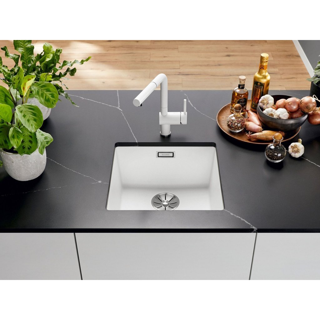 A Blanco Subline 400-U egy elegáns kivitelű gránit konyhai mosogató praktikus tálcával, lefolyófelület nélkül. Letisztult, minimalista kialakításának köszönhetően minden típusú konyhába alkalmas. Munkalap alá szerelhető - ez a telepítés természetes vagy műkőből, kerámiából, üvegből, tömörfából és kompozit anyagokból készült munkalapokhoz alkalmas, amelyek nedvességállóak és elég erősek. A mosogató teljes mérete 430 x 460 mm. A praktikus használatot szolgáló mosogatótálca mérete 400 x 400 mm, mélysége 190 mm.