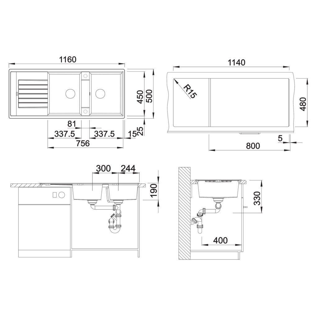 - Mosogató méretei: 1160 x 500 x 190 mm