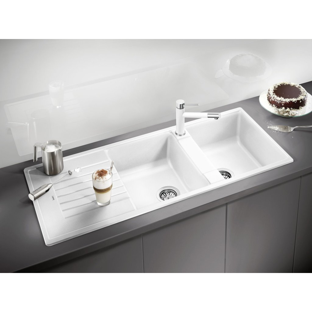 Blanco Zia 8 S, szilgránit mosogató 1160x500x190 mm, 2 kamrás, fehér, BLA-515597