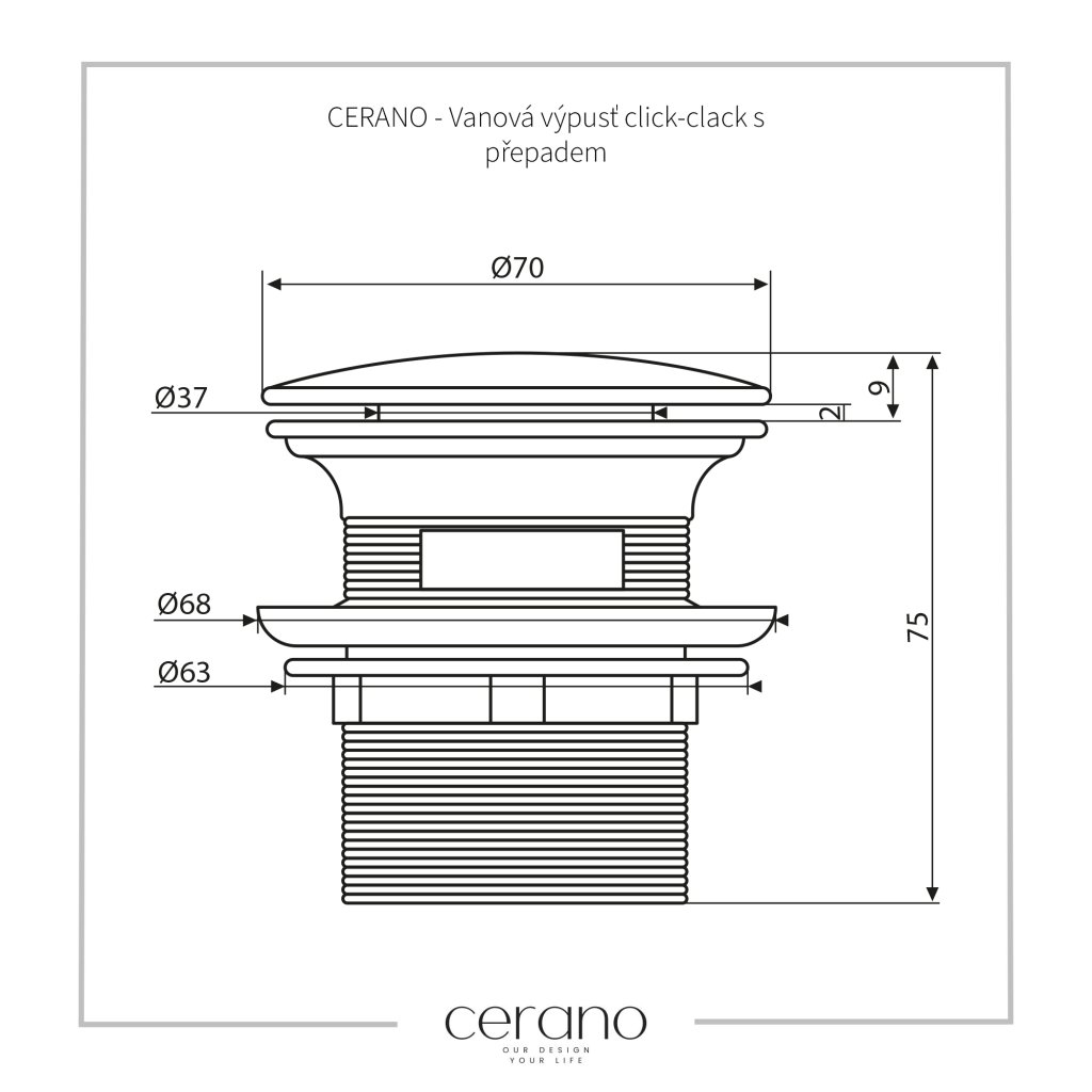 A Cerano Click-Clack kerek kádlefolyó egy nagyon praktikus fürdőszobai kiegészítő, amely a fürdőkádak víz elvezetésére szolgál.