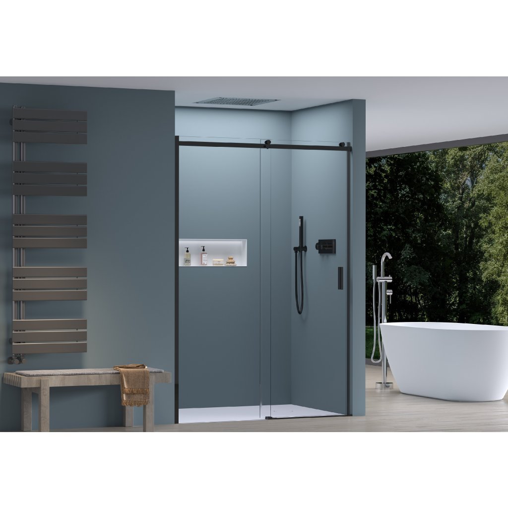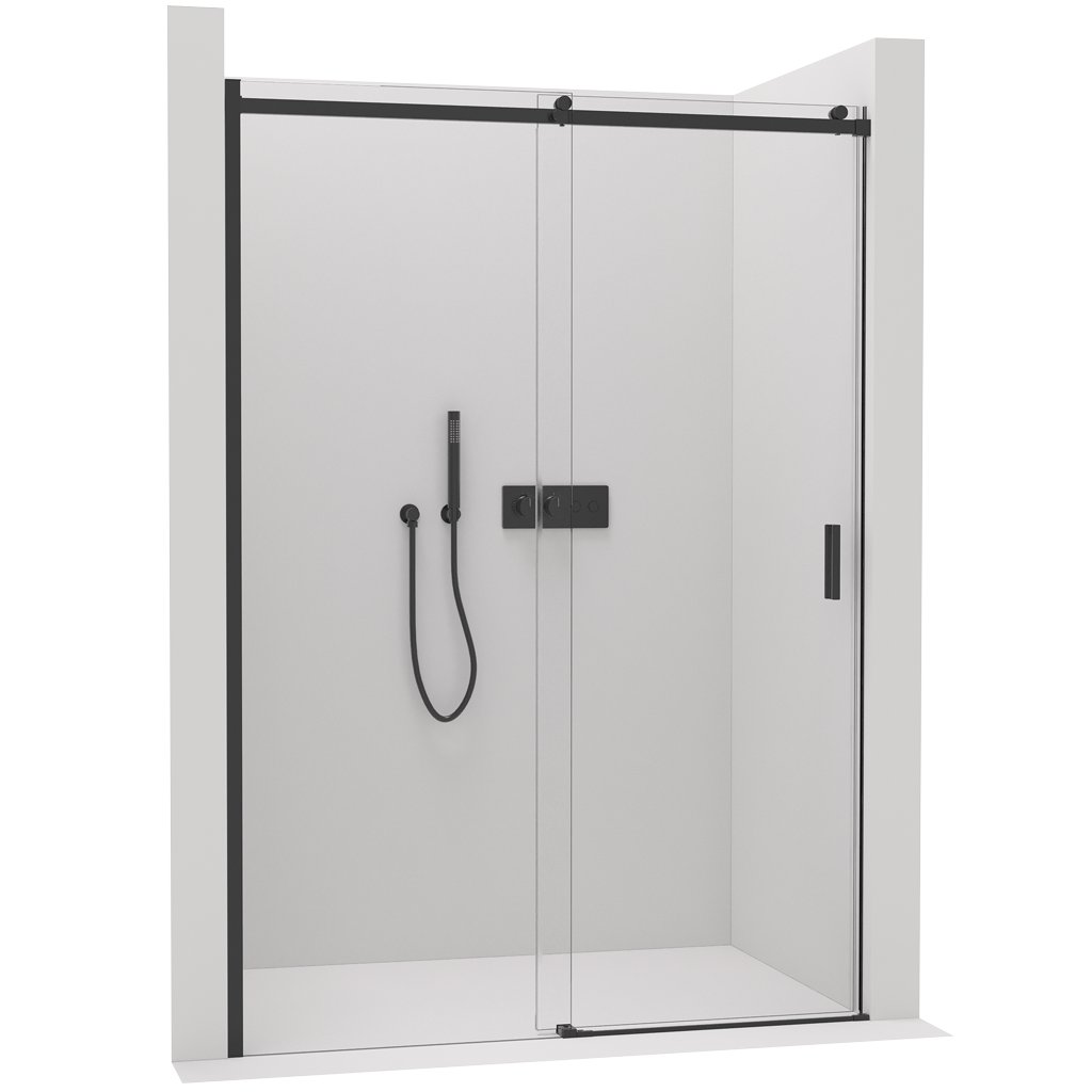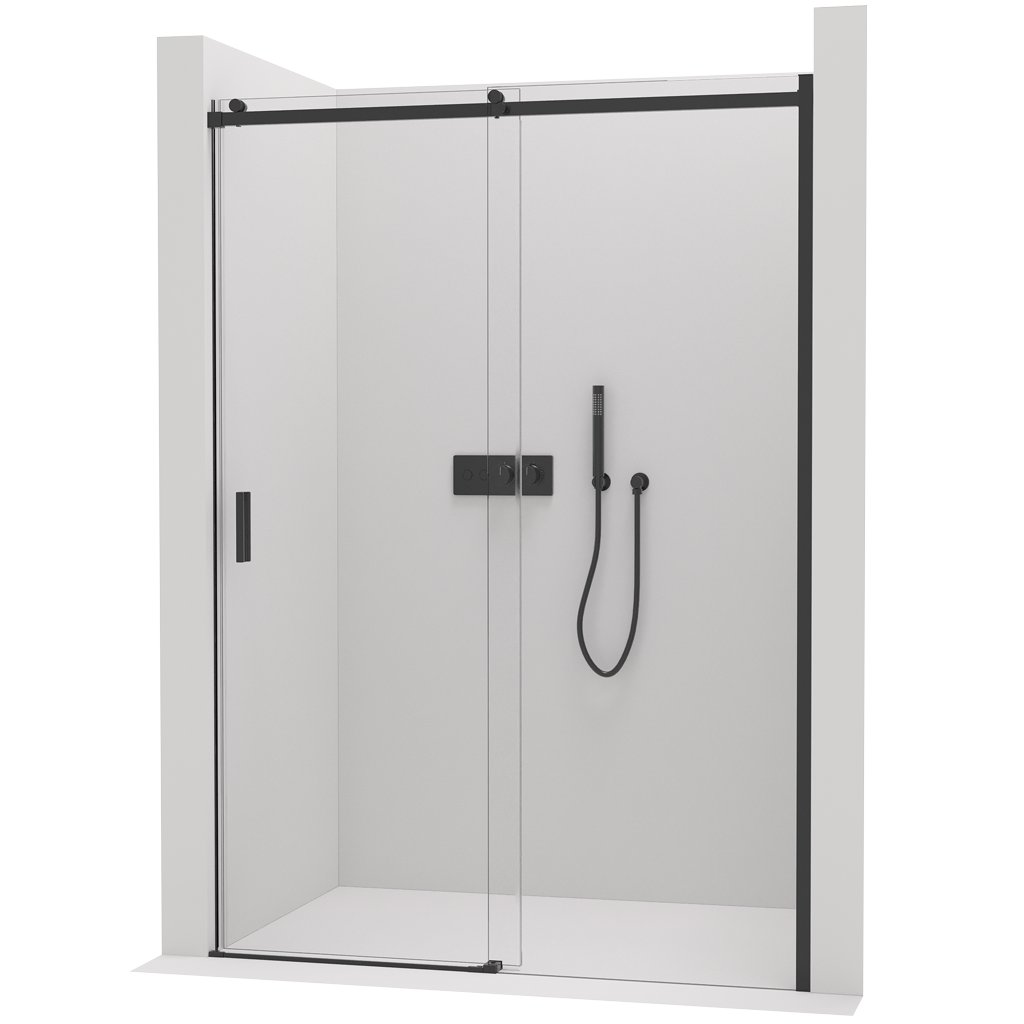 Az ajtó ideális fülkében történő beépítéshez, ami jelentősen megtakarítja a helyet még kisebb fürdőszobákban is. A beépítés univerzális, így az ajtó jobb vagy bal oldalra is beépíthető egyedi igények szerint. A profil fekete színű alumíniumból készült. Az alumínium egy olyan anyag, amely nagyon ellenáll a mechanikai sérüléseknek és a nedvességnek a fürdőszobában. Az ajtó fekete fogantyúval rendelkezik a könnyű nyitás érdekében. Mindig ügyelni kell a helyes mérésre és beépítésre, hogy az ajtó stabilitása a lehető legmagasabb legyen.