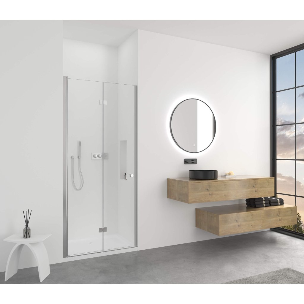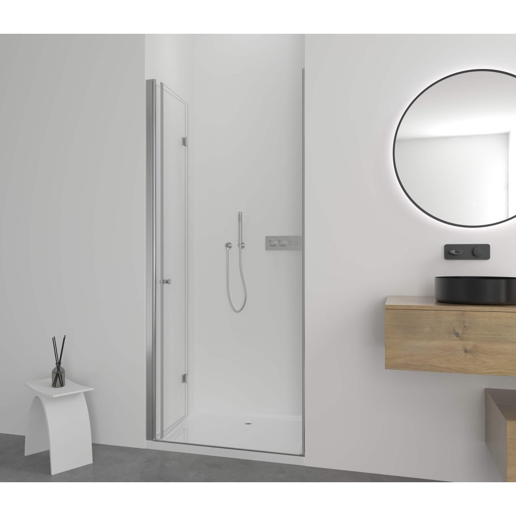 Az emelőrendszerű, zsanérokon függő összecsukható ajtók hagyományos módon nyílnak befelé és kifelé egyaránt. Ez a kialakítás nem igényel bizonyos helyet az ajtó kinyitásához, így kisebb fürdőszobákba is jó választás, ahol a hely nem elsődleges.