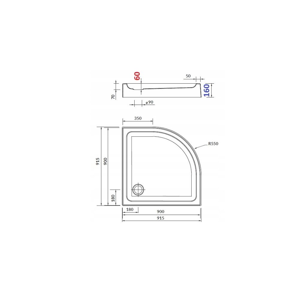 - Típus: negyed kerek zuhanykabin 90x90x190 cm + magas zuhanytálca 90x90x16 cm