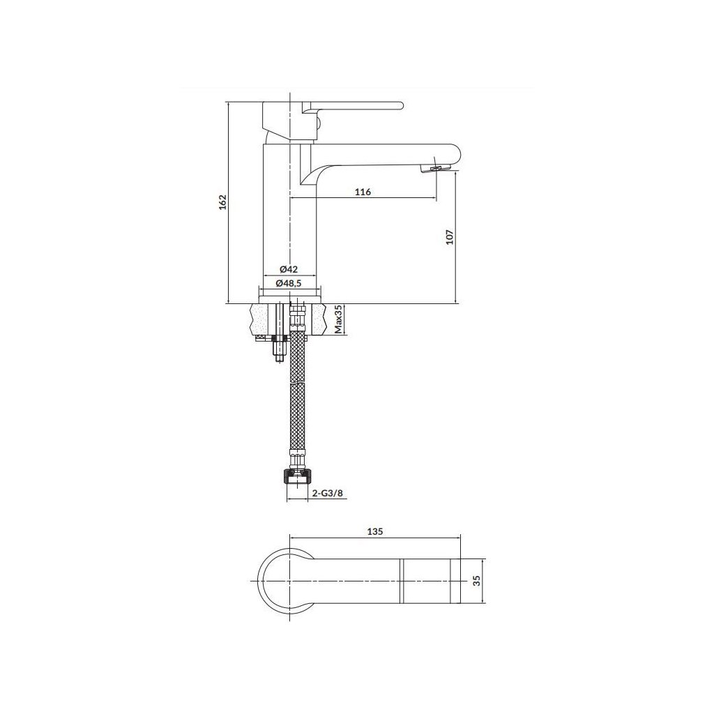 - Csatlakozás a vízellátáshoz 3/8"