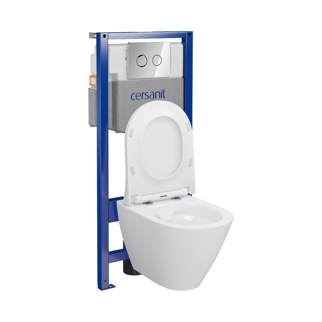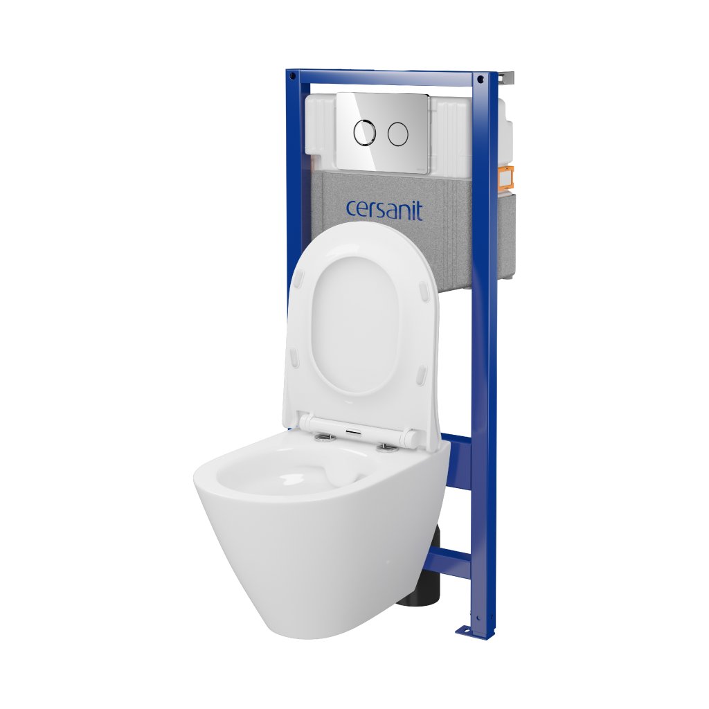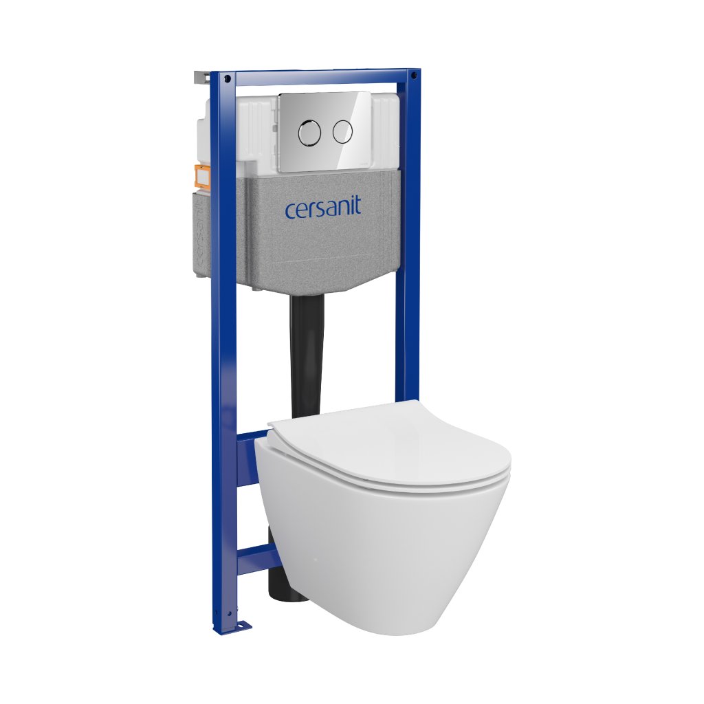 Cersanit City, System50 PNEU süllyesztett keret + függő WC csésze City Oval CleanOn + króm gomb Circle, S701-761