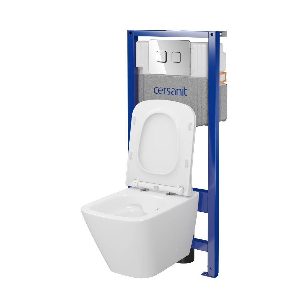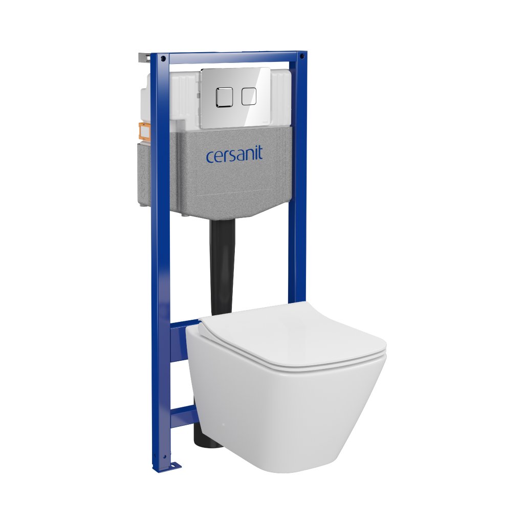 Cersanit City, System50 PNEU süllyesztett keret + függő WC csésze City Square CleanOn + króm gomb Circle, S701-776