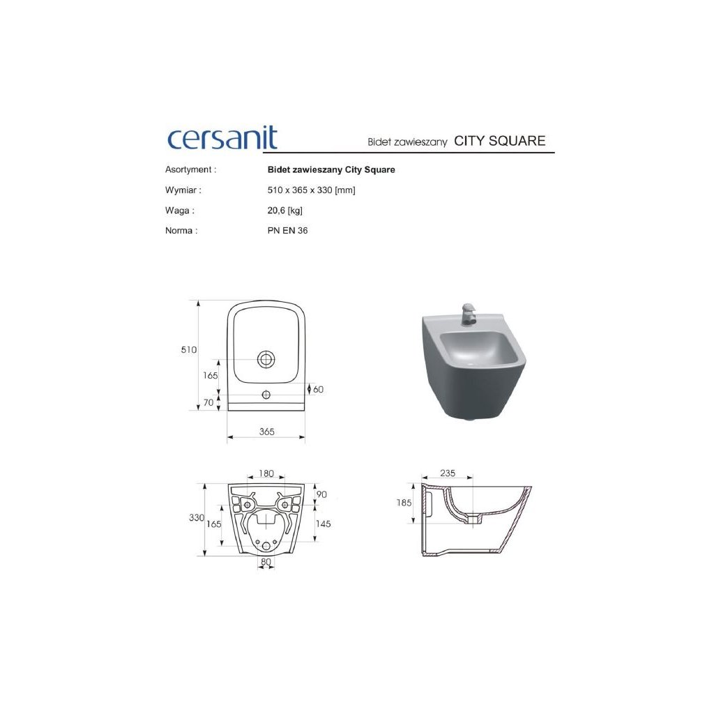 CERSANIT Városi tér - fali WC-bidé, K35-045