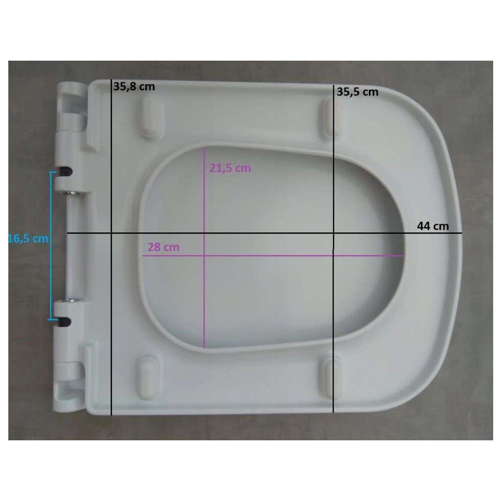 Négyszögletű WC-ülőke tartós hőre keményedő anyagból, antibakteriális komponenssel.