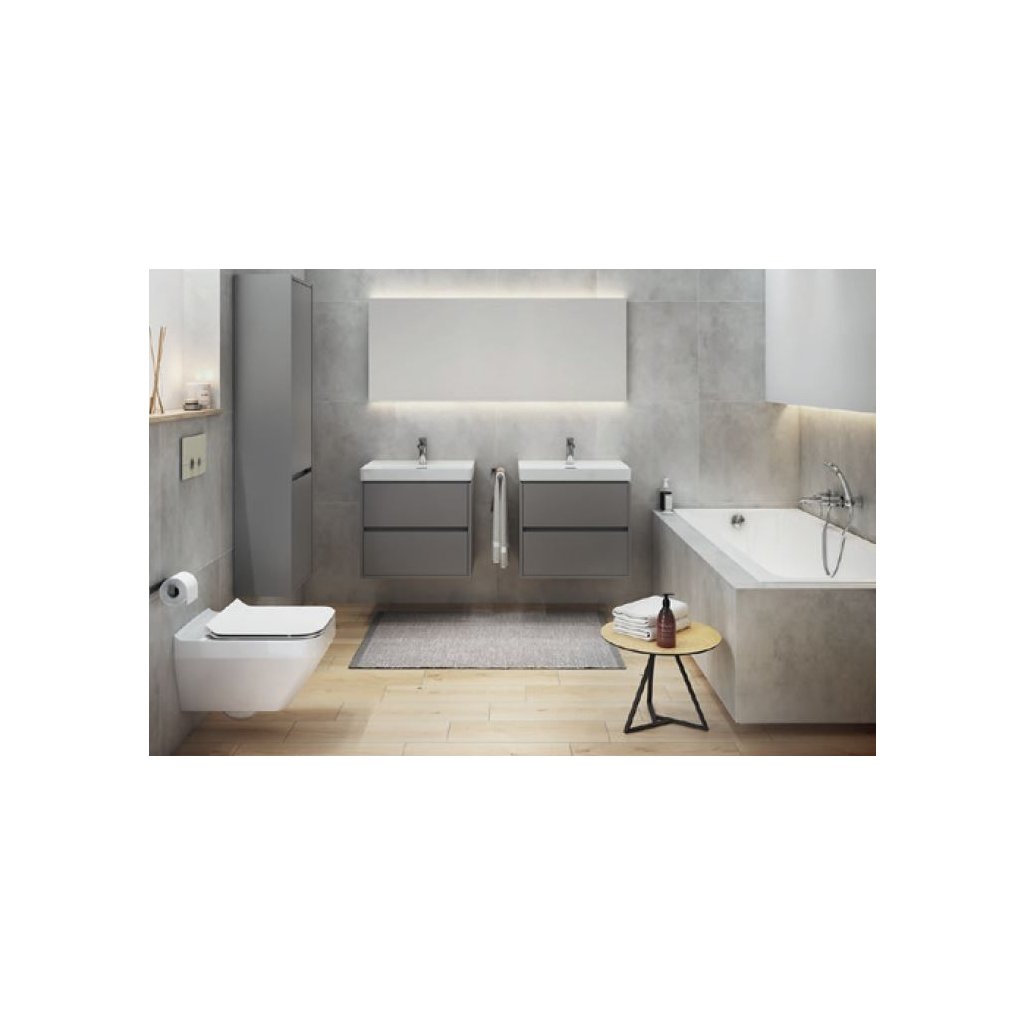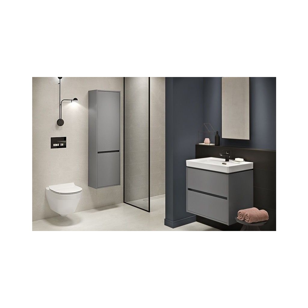 Falra szerelhető mosdószekrény CREA 50 két kihúzható dobozzal matt szürke színben, modern AQUASAFE technológiával készült / fokozott nedvességállóság /. A szekrény elegáns megjelenést kölcsönöz a süllyesztett elülső résznek és a rejtett fogantyúknak. A fiókok teljes kiterjesztésű "Häfele" csúszdákkal és csendes záródású rendszerrel vannak felszerelve, ami növeli a használat kényelmét.