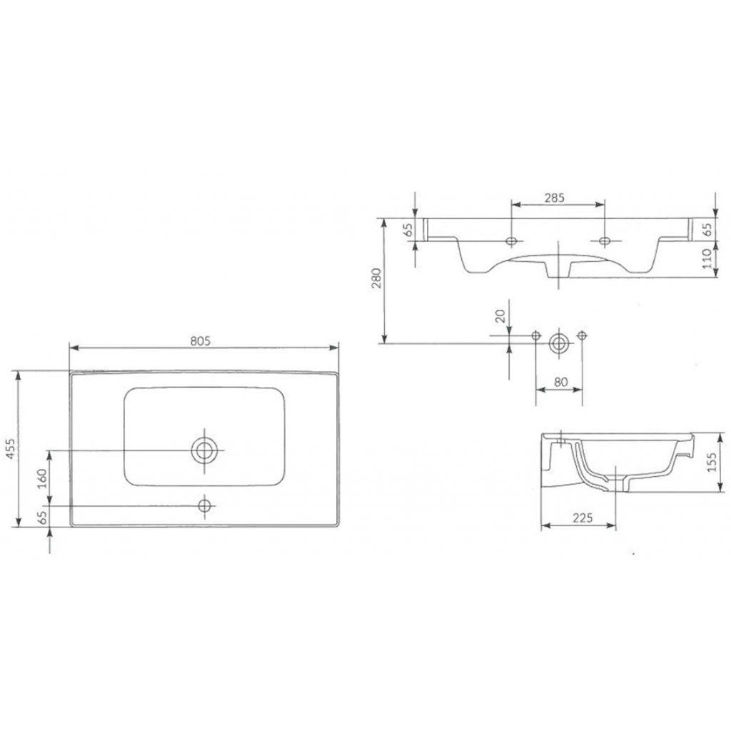 CREA 80 bútormosdó túlfolyóval és csapnyílással.
