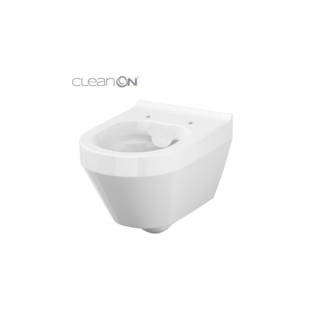 CREA négyzet alakú akasztótál innovatív CleanOn technológiával. Ennek a technológiának köszönhetően a víz hatékonyan kiöblíti a tál összes belső felületét, és a WC hosszabb ideig tisztább és higiénikusabb marad.