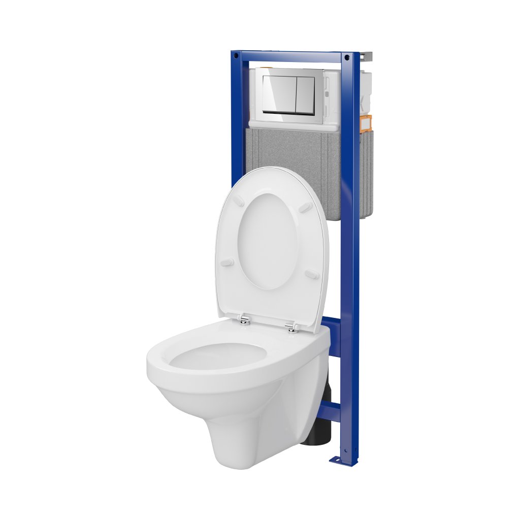 Cersanit Delfi, System40 MECH süllyesztett keret + Delfi falra szerelhető WC csésze + króm gomb Enter II, S701-767