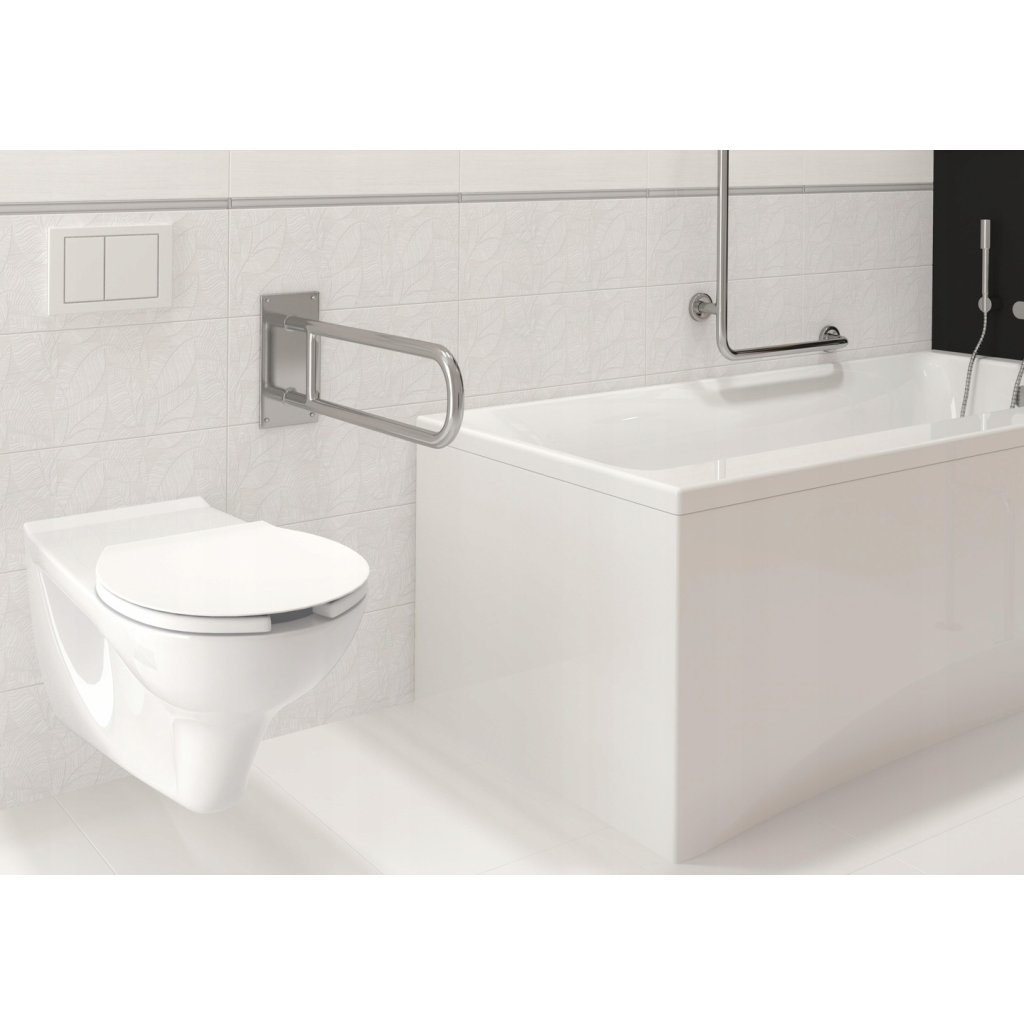 Lekerekített kialakítású dönthető fali tartó, amely biztos támaszt nyújt idősek és mozgáskorlátozottak számára. A modell WC-re vagy mosdókagylóra való felszerelésre szolgál. Krómozott acélból készült a hosszú távú tartósság érdekében