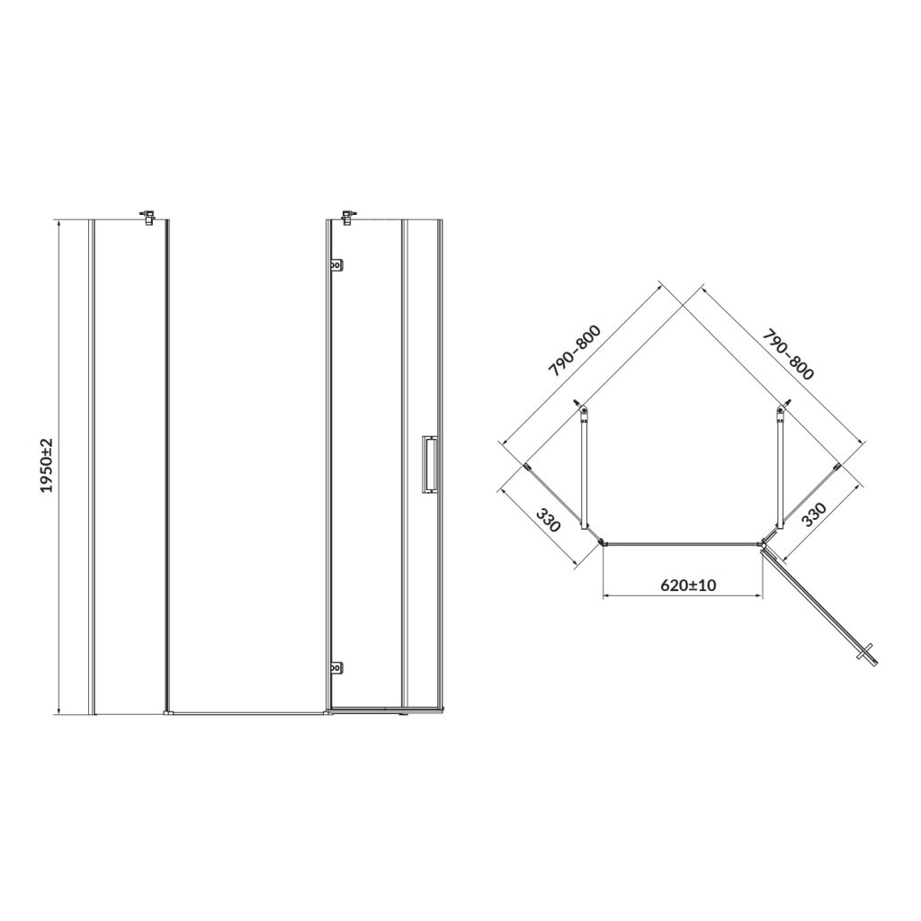Cersanit Jota, 5 karbon zuhanykabin 80x80x195 cm, jobb ajtó, 6mm átlátszó üveg, fekete profil, S160-011