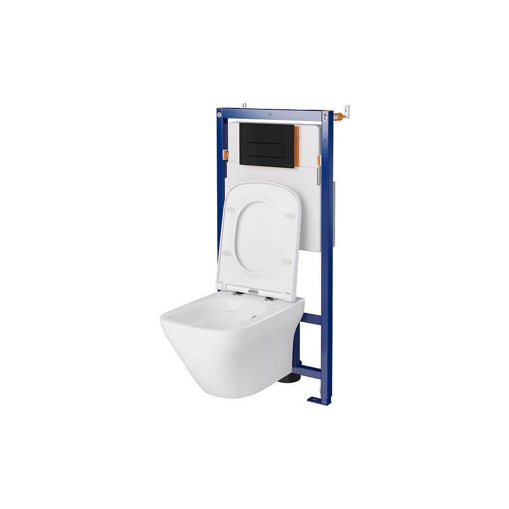 Cersanit Larga, TechLine Opti süllyesztett keret + falra szerelhető Larga Square CleanOn WC csésze + fekete gomb B1, S701-664