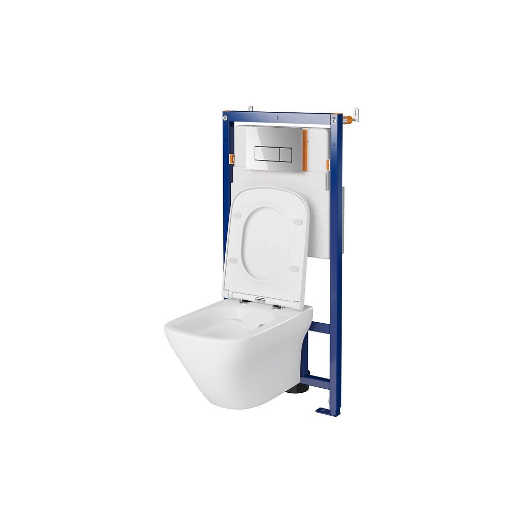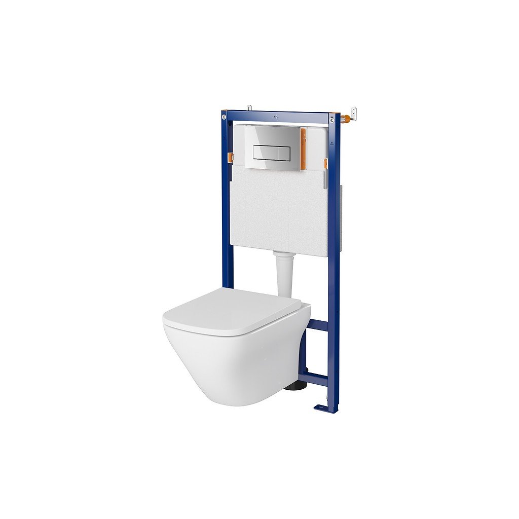 Cersanit Larga, TechLine Opti süllyesztett keret + falra szerelhető Larga Square CleanOn WC csésze + króm gomb B1, S701-663