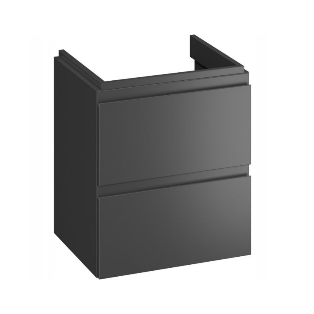 A modern, minimalista formájú MODUO mosogatószekrény matt felületű antracit lakkozott deszkából készült. A modell kényelmes mart fogantyúkkal és csendes záródású rendszerrel van felszerelve. A szekrény a MODUO 50 mosdóval együtt szerelhető össze, önszerelhető változatban kerül forgalomba.