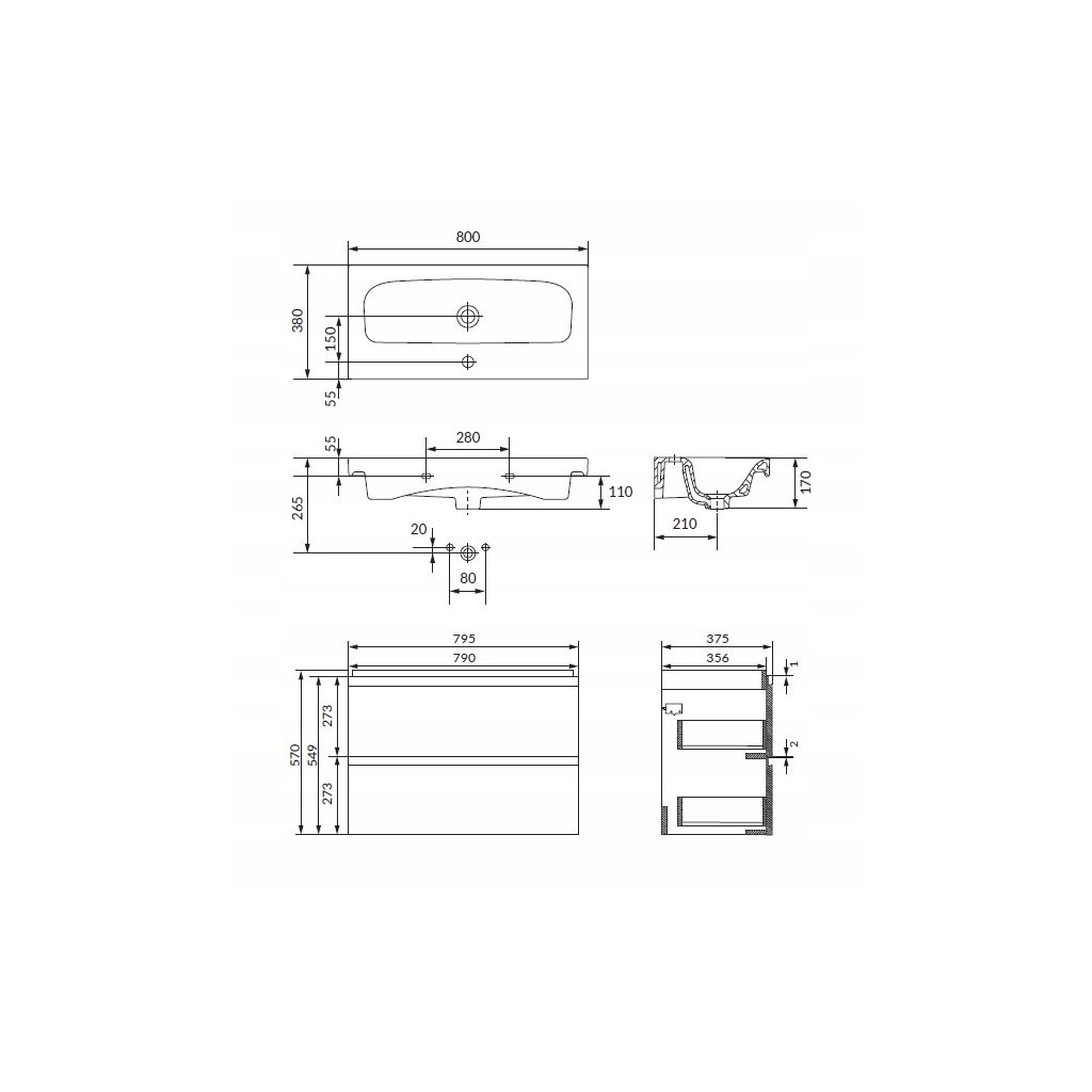 A készlet tartalmaz egy MODUO mosogató szekrényt önszerelhető változatban és egy MODUO 80 kerámia mosogatót A szekrény elülső oldala MDF-ből készült, antracit színre festve, matt felülettel. A szekrény kényelmes, mart fogantyúkkal és csendes záródású rendszerrel rendelkezik.