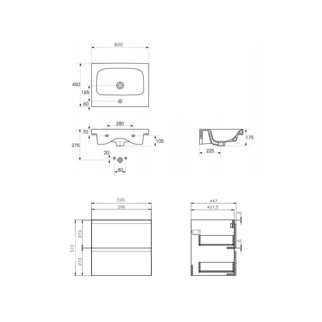 A készlet tartalmaz egy MODUO mosogató szekrényt önszerelhető változatban és egy MODUO 60 kerámia mosogatót A szekrény elülső oldala MDF-ből készült, antracit színre festve, matt felülettel. A szekrény kényelmes, mart fogantyúkkal és csendes záródású rendszerrel rendelkezik.