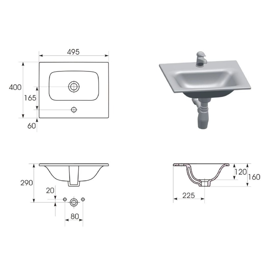 CERSANIT Moduo - süllyesztett mosdó 50x40 cm, fehér, K116-042