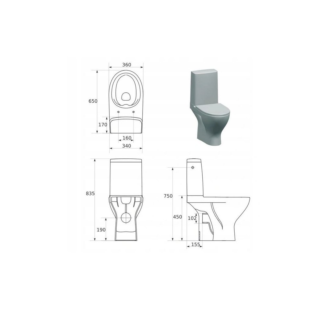 A MODUO kompakt WC-garnitúrát a modern dizájn és az egyedi fehér Cersanit White jellemzi. A tál 43 centiméteres magassága növeli a használat kényelmét. Az innovatív CleanOn technológiának köszönhetően a víz minden helyre eljut az edény belsejében. A tál hiányzó belső pereme azt jelenti, hogy nincs hely a szennyeződéseknek, baktériumoknak és mikrobáknak. A kompakt 3/5 literes vízöblítő rendszert használ. A kompakt egység vízszintes lefolyóval és vízellátással van felszerelve a tartály oldalán. Az ár egy kompakt SLIM hőre keményedő, antibakteriális, lassan záródó, easy off funkcióval rendelkező ülésre vonatkozik.