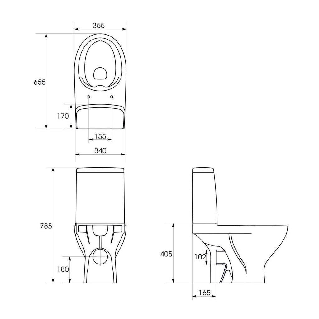 WC kombi MODUO CLEAN ON hátsó hulladékkal, vízellátás a tartály oldaláról gazdaságos öblítő rendszerrel 3 / 5l. Tartalmaz egy hőre keményedő, antibakteriális SLIM WRAP ülést lassú billentéssel / lágy zárással / és az ülés egyszerű eltávolításával és rögzítésével egyetlen EASY OFF gombbal.