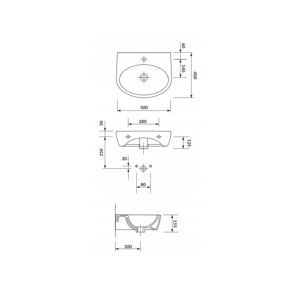 Cersanit Parva, falra szerelhető mosdó 50x40 cm, fehér, K27-030