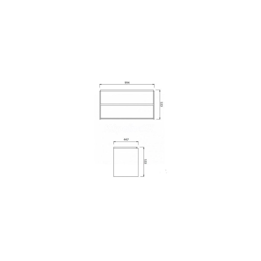 Egyszerű, modern formájú szekrény két fiókkal. A szekrény lakkozott bútorokból készült, fehér kivitelben. A szekrény belseje meleg szürke színű. A fiókok kényelmes, mart fogantyúkkal és lassan záródó rendszerrel rendelkeznek.