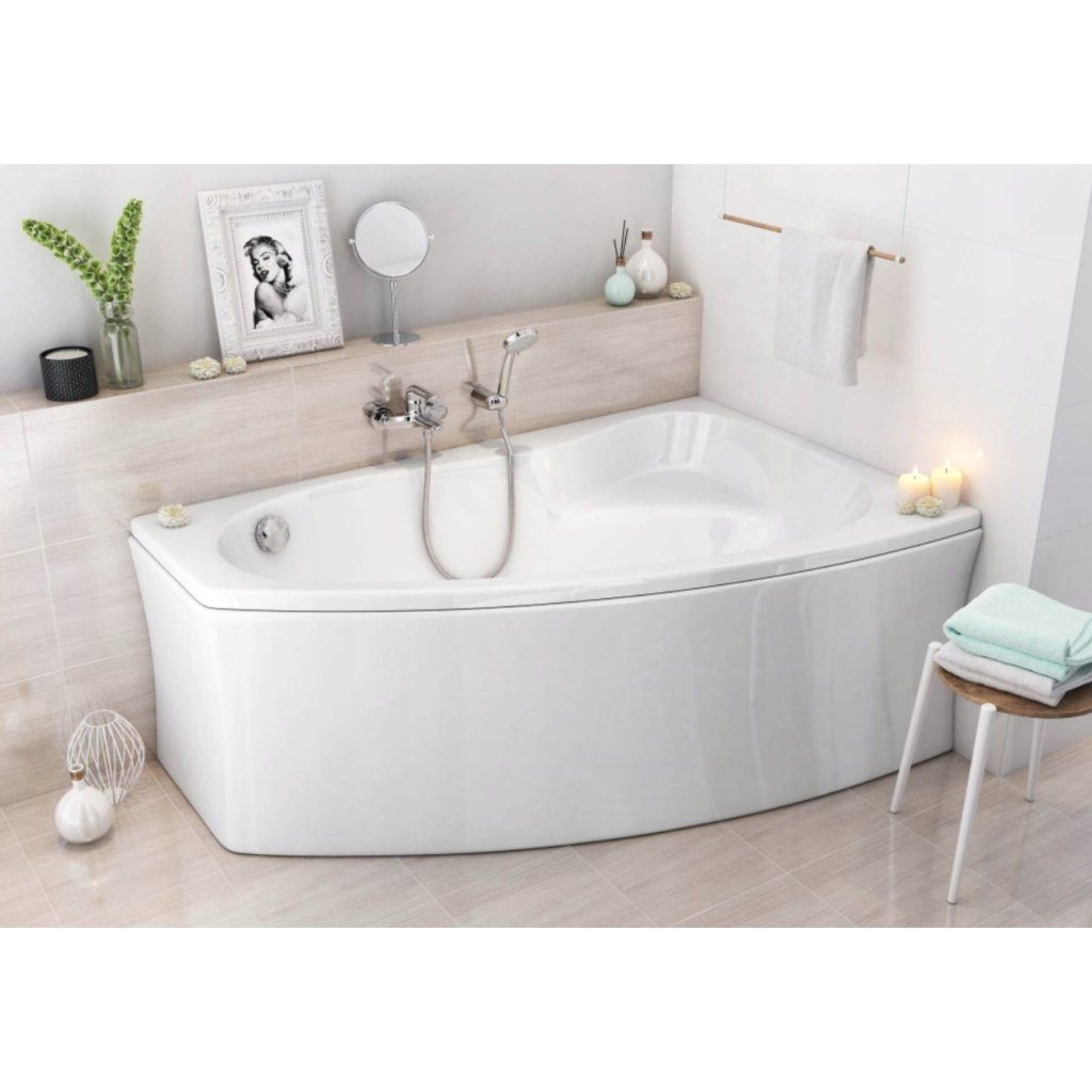 A bal oldali aszimmetrikus SICILIA 150 fürdőkád kényelmes ülőfelülettel, csaptelepnek és nagy fürdőhellyel rendelkezik. Az oldalsó lefolyó a rövidebb oldalon volt. A fürdőkád állítható lábakkal rendelkezik a beépítési magasság meghatározásához. Kiegészíthető előlappal (nem tartozék).